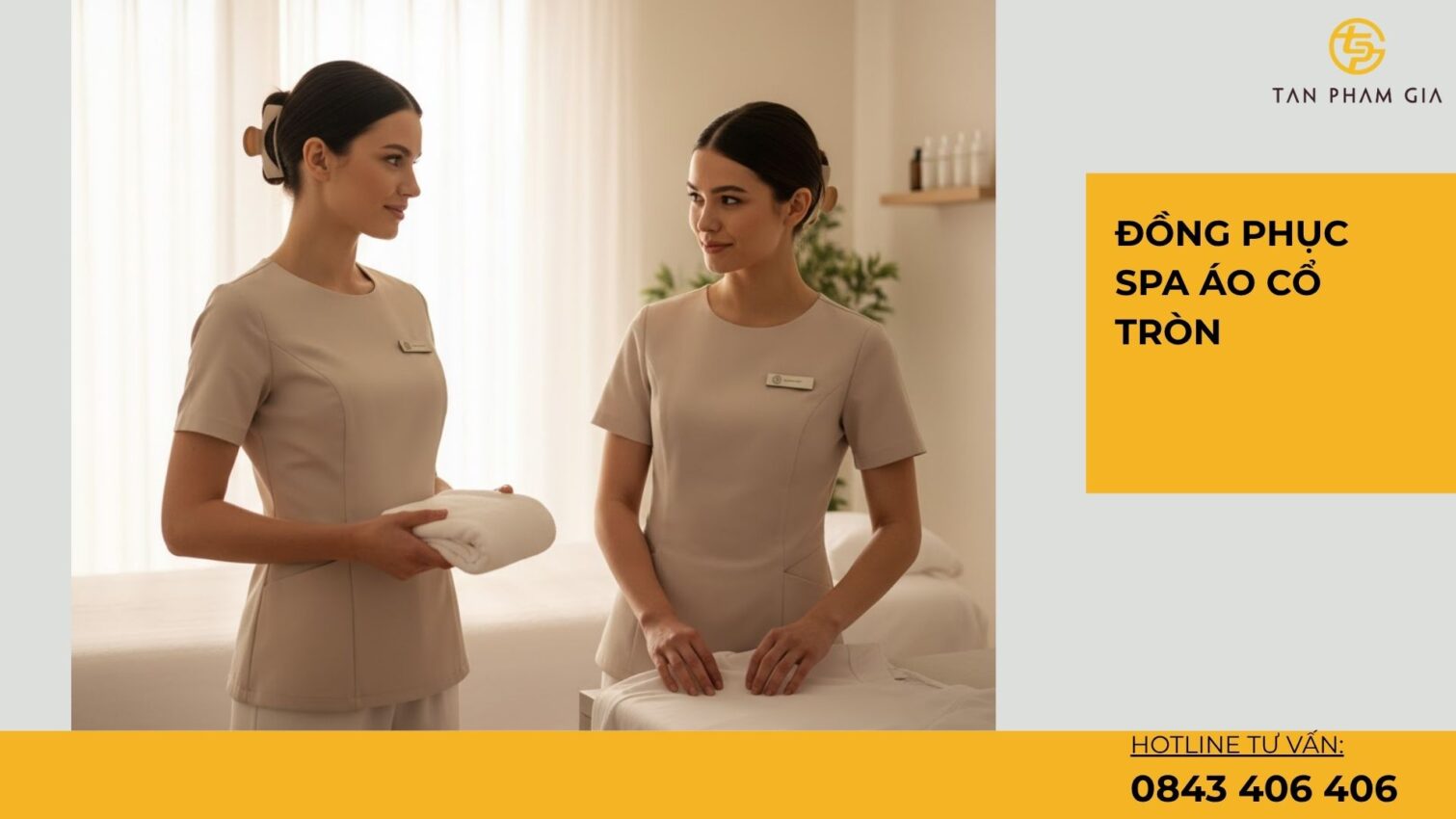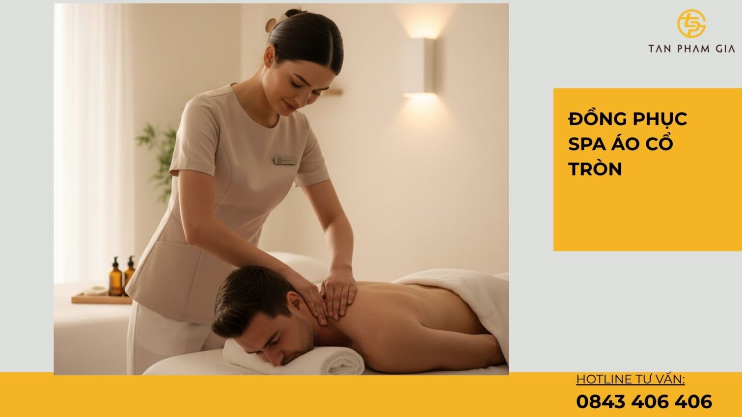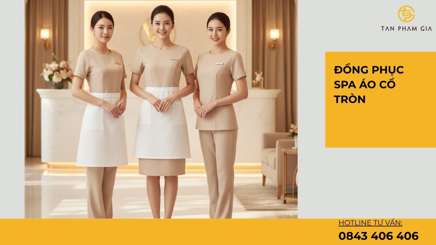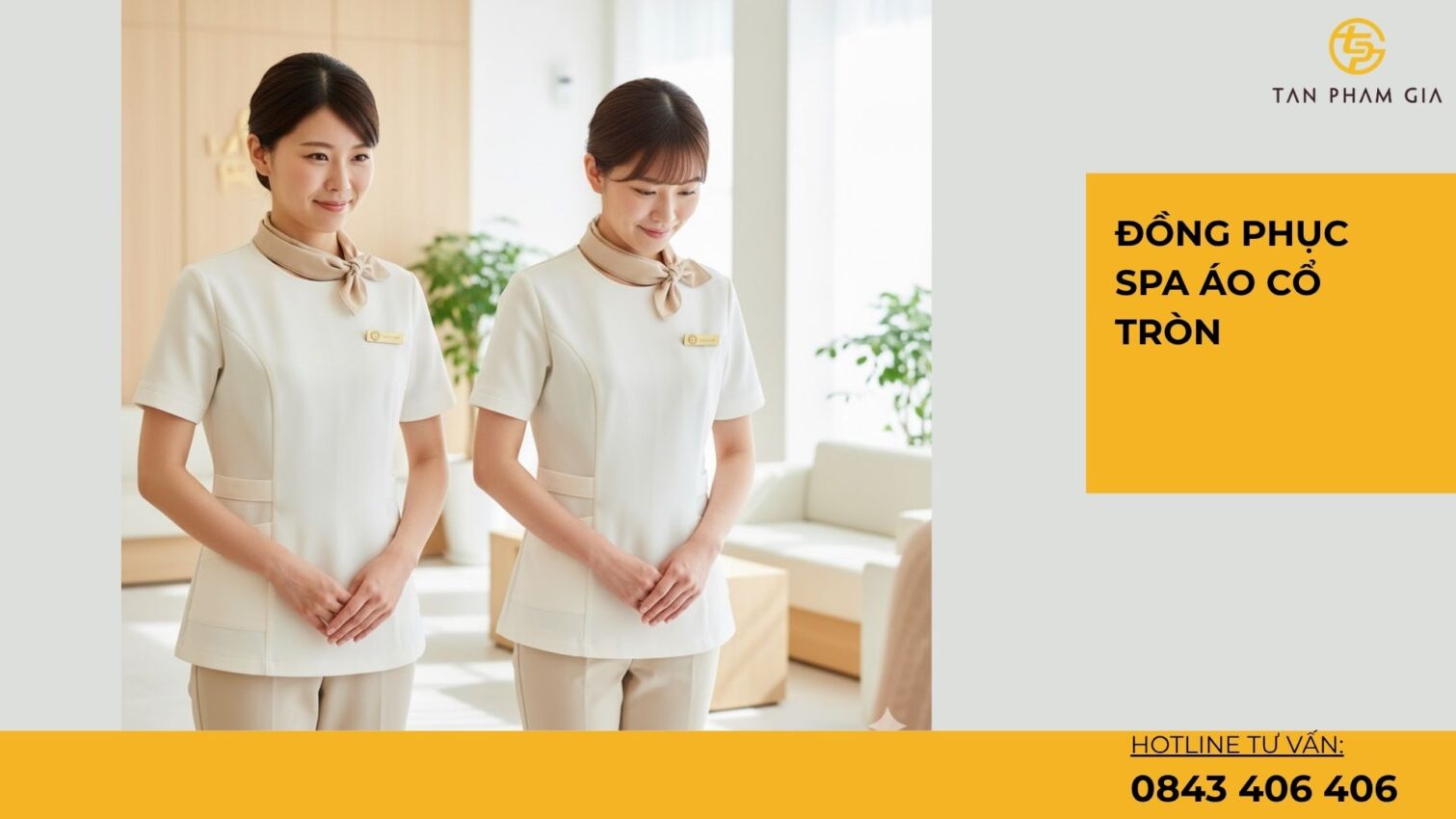 Cổ tròn có tác dụng “mềm hóa” hình ảnh nhân viên, giúp họ trở nên thân thiện, dễ tiếp cận hơn với khách hàng. Trong ngành spa – nơi yếu tố cảm xúc và trải nghiệm được đặt lên hàng đầu – kiểu cổ tròn giúp tạo nên sự tin cậy và cảm giác thư giãn tự nhiên.