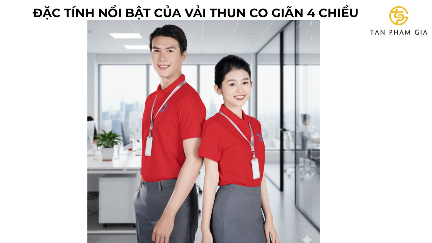 📌 Áo thun đồng phục co giãn 4 chiều là loại áo được may từ vải có khả năng đàn hồi đa hướng – kéo giãn cả theo chiều ngang và chiều dọc. Khác với áo 2 chiều chỉ giãn một hướng, áo 4 chiều mang lại sự linh hoạt tối đa khi mặc, giúp nhân viên dễ dàng vận động mà không lo bó sát hay mất form dáng.