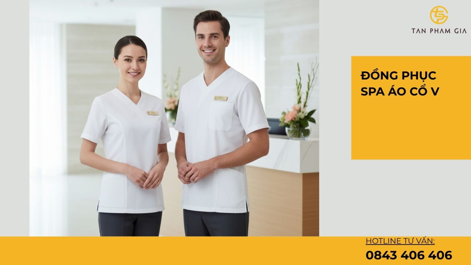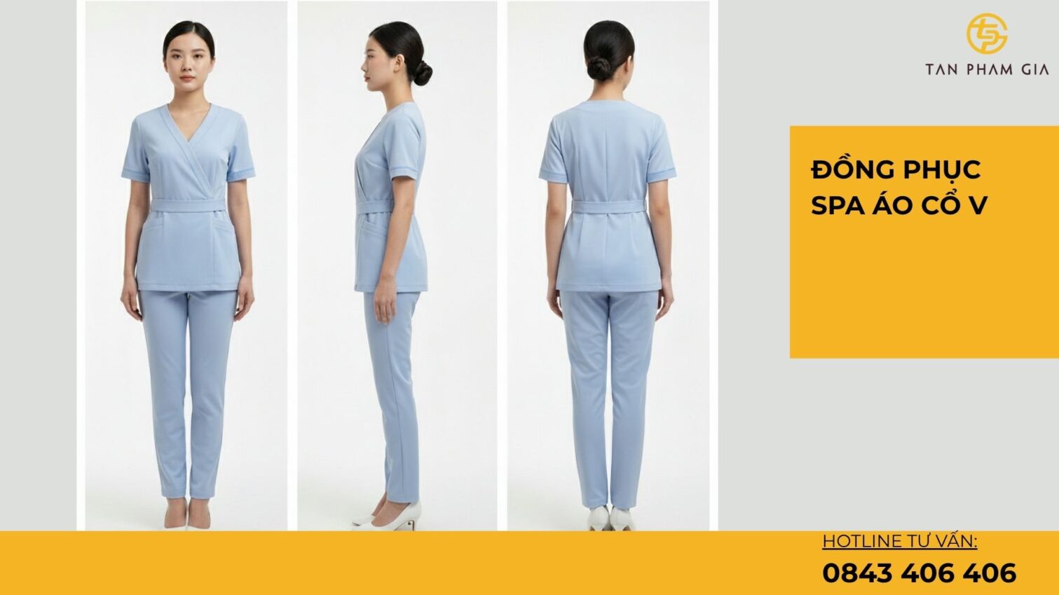 Áo cổ V có ưu điểm nổi bật ở đường cổ khoét chữ V, giúp dáng người trở nên cân đối và gọn gàng hơn. Đây là lựa chọn lý tưởng cho môi trường spa, nơi nhân viên cần sự thanh lịch nhưng không kém phần thoải mái. 🌸