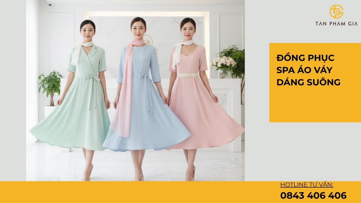 Phong cách tối giản (minimalism) đang là xu hướng được nhiều spa hiện đại yêu thích. Váy dáng suông với đường cắt gọn gàng, không chi tiết rườm rà, tạo cảm giác trẻ trung, chuyên nghiệp và sang trọng. Sự tinh giản trong thiết kế giúp nhân viên thoải mái vận động mà vẫn giữ được thần thái chỉn chu.