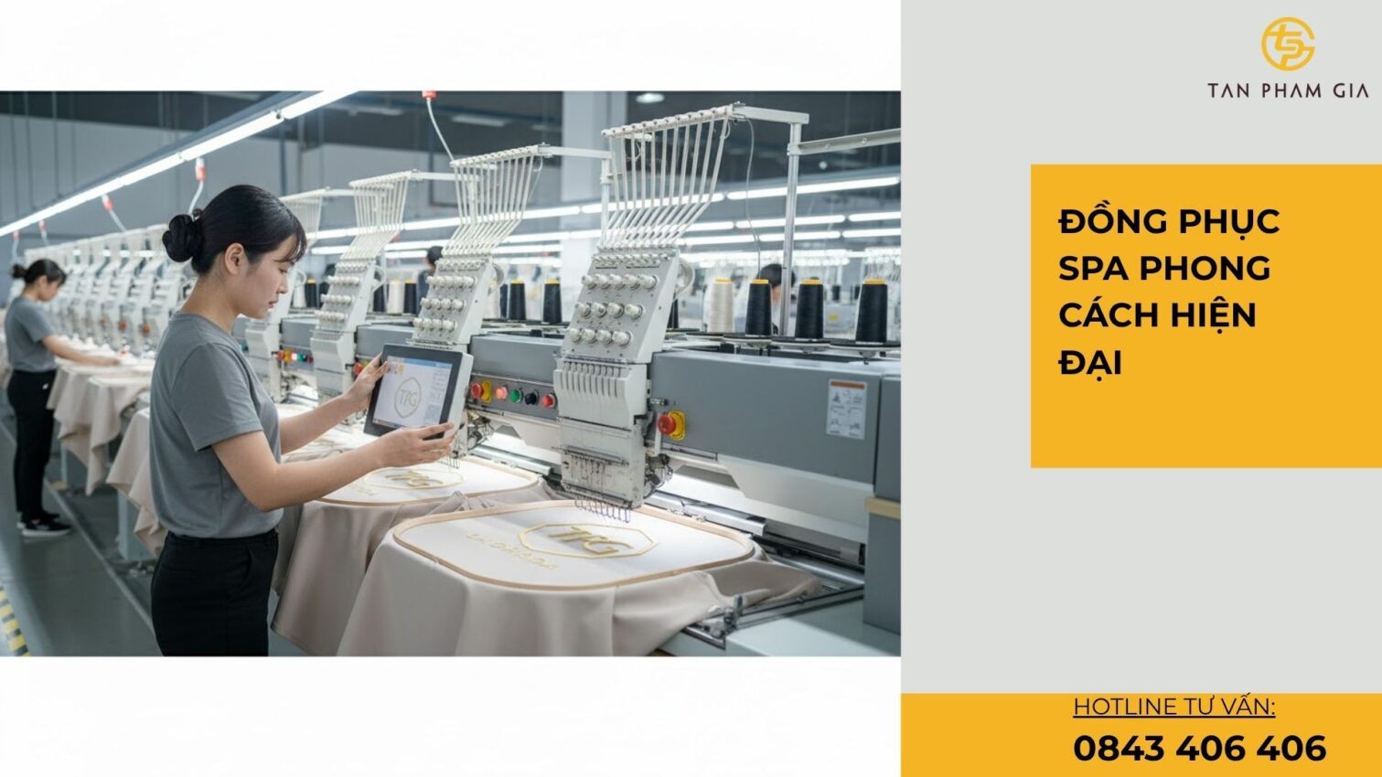 Tân Phạm Gia Uniform là đơn vị tiên phong trong thiết kế và may đồng phục spa phong cách hiện đại, sở hữu xưởng sản xuất hơn 1.000m² cùng đội ngũ kỹ thuật lành nghề. TPG đã đồng hành với nhiều thương hiệu lớn trong lĩnh vực spa – làm đẹp – y tế – dịch vụ.
