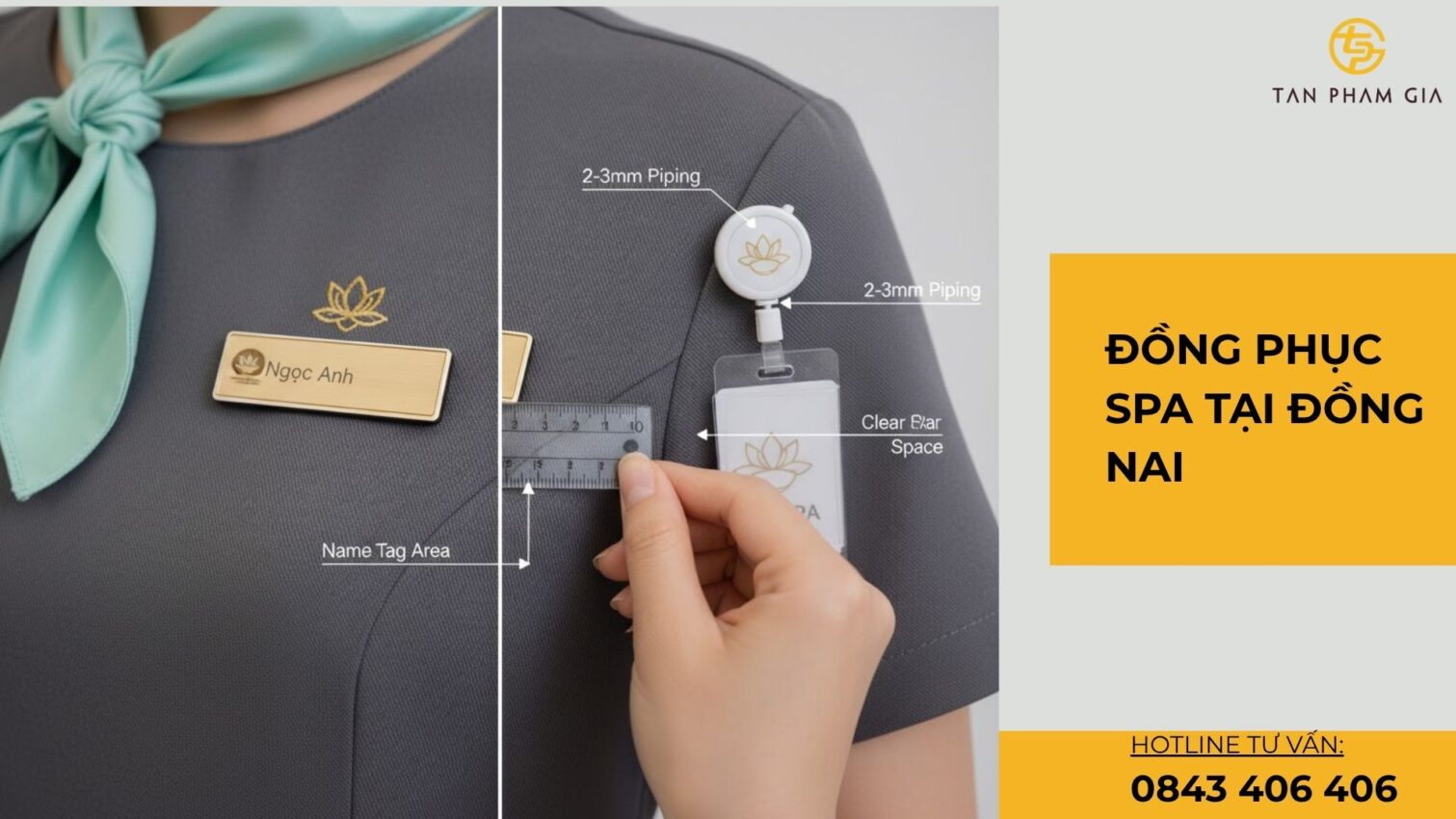 Bộ tiêu chuẩn hình ảnh nên bao gồm bảng màu thương hiệu, quy tắc logo ≥ 2cm, vị trí bảng tên, và dress code theo ca. <u>Tip</u>: quy định giày – tóc – phụ kiện để giữ tổng thể gọn gàng. Đồng phục spa cần fit theo nhóm: form A-line cho váy lễ tân, slim-straight cho quần kỹ thuật viên, tránh phom ôm sát gây khó chịu.