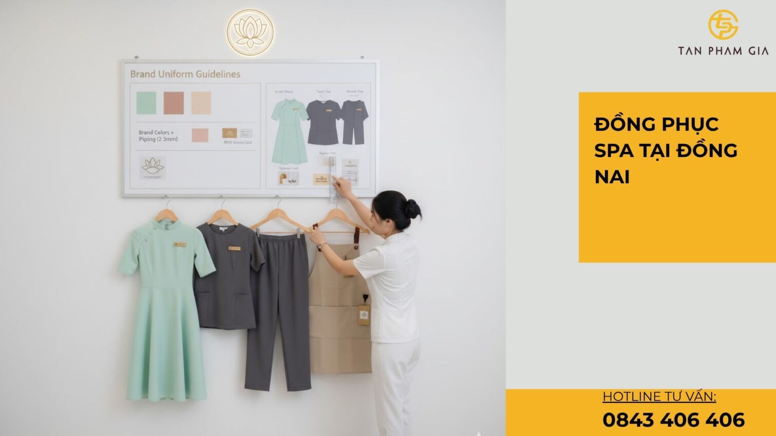 7. Đồng bộ váy quần áo theo nhận diện thương hiệu spa
