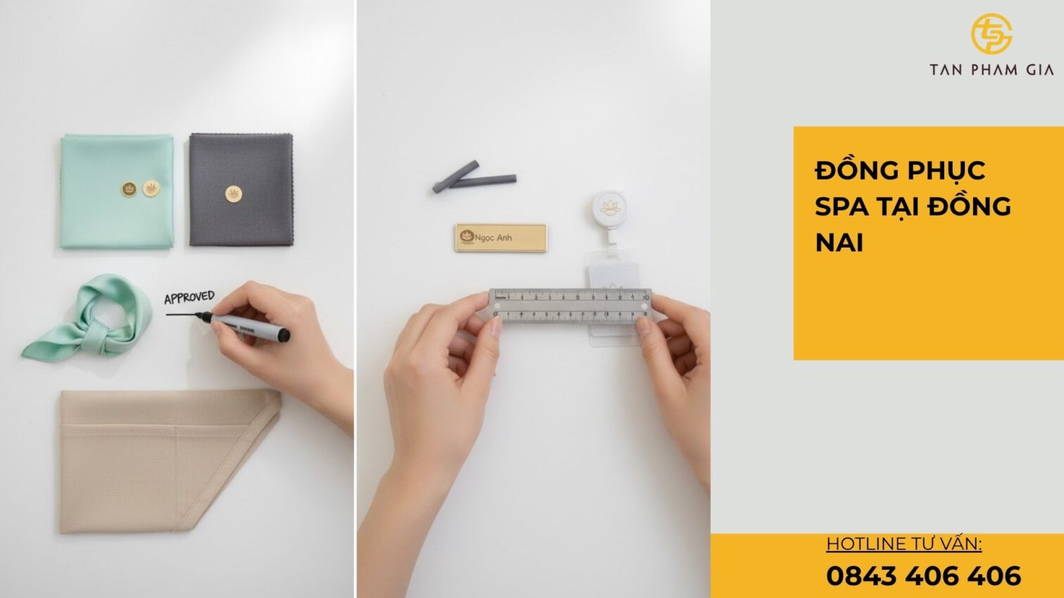 15.2 Phụ kiện đồng bộ: bảng tên, tạp dề, khăn tóc 🎀