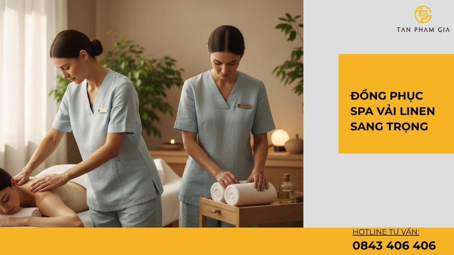 💬 Hãy để đội ngũ chuyên nghiệp của Tân Phạm Gia giúp bạn biến bộ đồng phục spa thành dấu ấn thương hiệu – tinh tế, bền đẹp và sang trọng.
