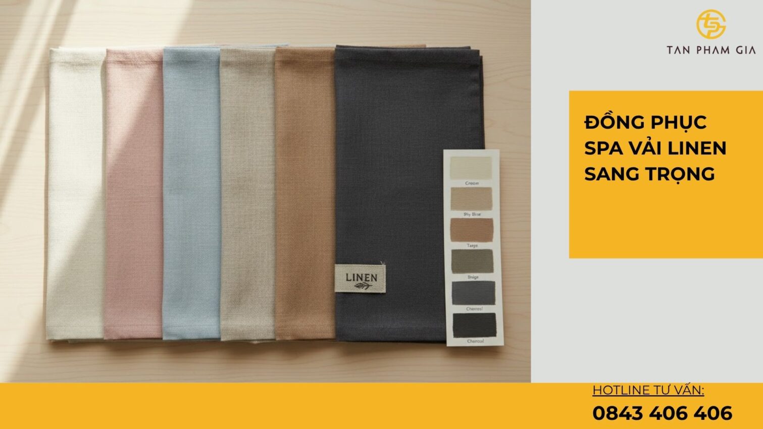 📌 Ngoài linen, Tân Phạm Gia còn cung cấp đa dạng chất liệu cao cấp cho đồng phục spa, đồng phục công sở, và cả áo thun đồng phục.