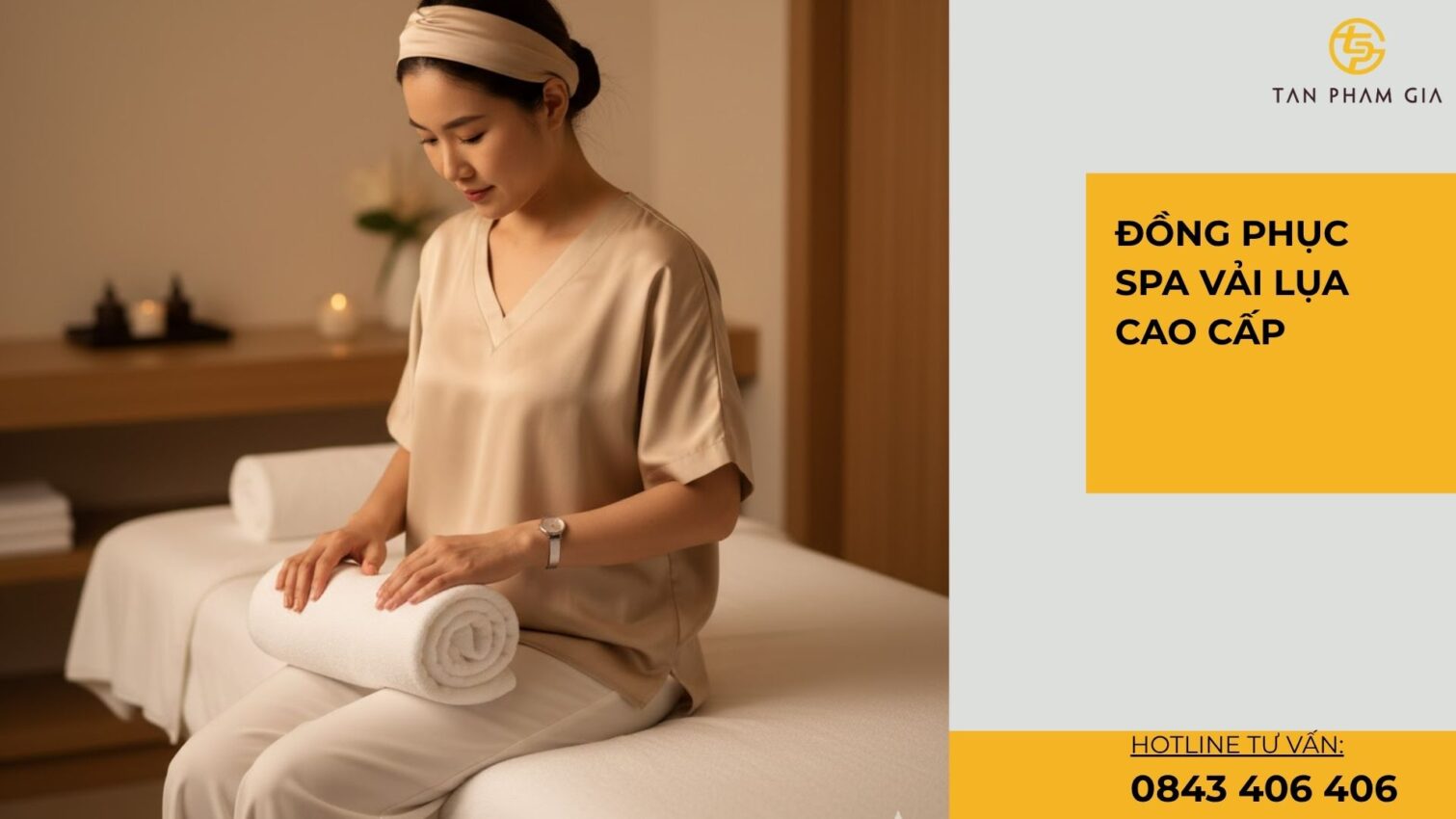 Môi trường spa đòi hỏi sự thoải mái, mát mẻ và sang trọng. Vải lụa đáp ứng hoàn hảo các yếu tố đó: mềm, nhẹ, thoáng khí và có độ bóng tự nhiên, giúp người mặc luôn dễ chịu khi di chuyển và phục vụ khách. Hơn nữa, ánh sáng phản chiếu trên lụa giúp tăng hiệu ứng sang trọng cho không gian spa, tạo nên cảm giác thư thái và cao cấp.