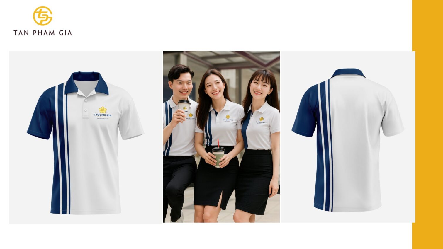 👕 Với áo đồng phục công sở, quán ăn, showroom…, phối màu ở bo cổ và tay là lựa chọn tinh tế hơn.