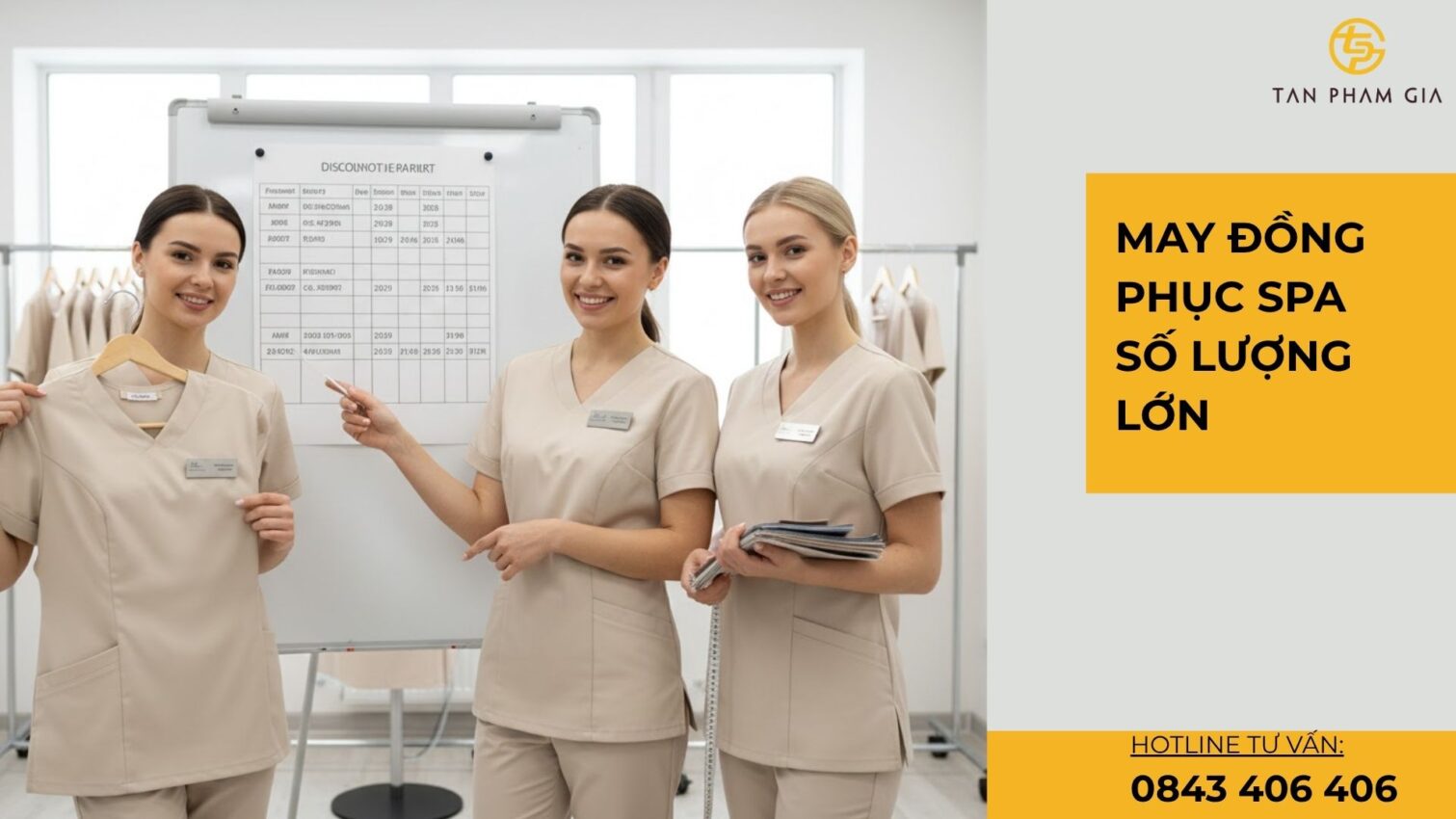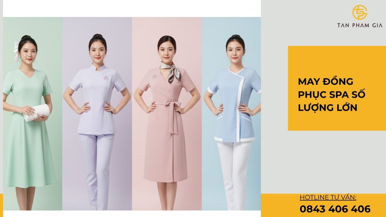 Giá may đồng phục spa số lượng lớn phụ thuộc vào chất liệu vải, kiểu dáng, kỹ thuật may và số lượng đặt hàng. Xưởng Tân Phạm Gia thường báo giá trọn gói, bao gồm công may, in/thêu logo, đóng gói.