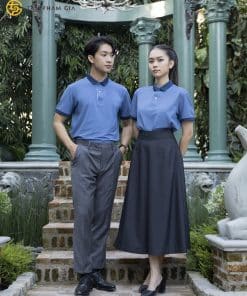 Màu xanh tím mang lại sự thanh lịch, tinh tế và sáng tạo cho người mặc. Nó cũng thể hiện sự bình tĩnh, sự yên bình và sáng suốt. Chính vì vậy áo đồng phục này có thể sử dụng có các trường hợp quý khách hàng thuộc lĩnh vực y tế, trường học, nhà hàng, khách sạn.