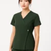 Đồng phục được may với cổ chữ V thanh thoát, tay ngắn liền thân gọn gàng, không vướng víu. Phần eo được cắt may vừa vặn, tôn dáng nhẹ nhàng mà không quá ôm. Quần ống suông nhẹ, lưng thun co giãn tạo sự linh hoạt trong suốt ngày làm việc. Tổng thể thiết kế hướng đến sự trẻ trung – năng động – linh hoạt.