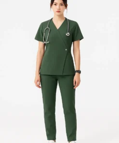 Đồng phục y tế nữ màu xanh rêu là sự kết hợp hài hòa giữa tính chuyên nghiệp và vẻ đẹp tinh tế. Màu xanh rêu trầm nhưng không tối, mang lại cảm giác nghiêm túc, sạch sẽ và thân thiện trong môi trường y tế. Thiết kế may theo phom dáng nữ giúp tôn dáng và tạo sự thoải mái tối đa khi làm việc.