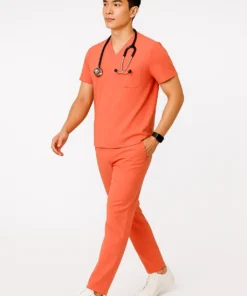 Đồng phục y tế nam màu cam là lựa chọn đầy cá tính, hiện đại và chuyên biệt dành cho các cơ sở y tế, viện điều dưỡng, phòng xét nghiệm hay khu vực chăm sóc đặc biệt. Được thiết kế bởi Tân Phạm Gia – đơn vị may mặc với hơn 20 năm kinh nghiệm – mẫu đồng phục màu cam không chỉ nổi bật về thị giác mà còn đáp ứng hoàn hảo các tiêu chí về chất lượng, tính ứng dụng và thẩm mỹ.